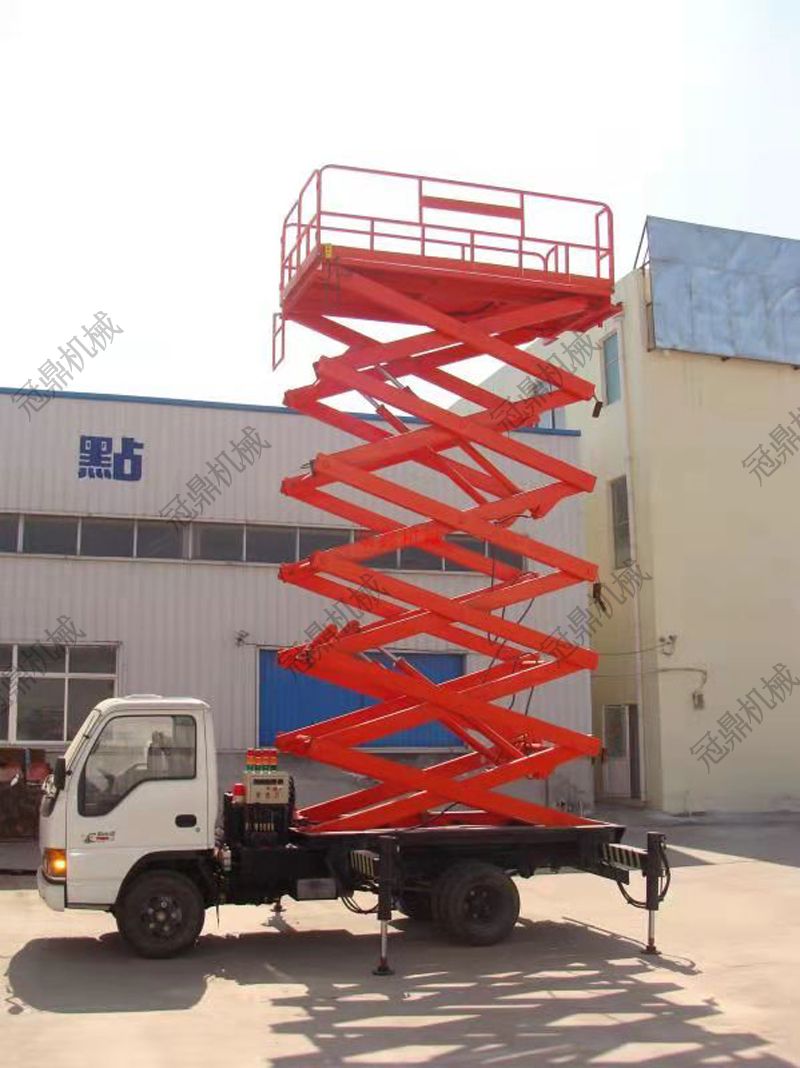 車載剪叉式升降機(jī)是集四輪移動與二輪牽引式于一身,采用汽車底盤做平臺底架,利用汽車發(fā)動做動力,既可行駛又可驅(qū)動升降機(jī)。車載剪叉式升降機(jī)以小型貨車(汽車)或電瓶車為載體,移動靈活迅速,操作簡單,作業(yè)范圍廣。車載剪叉式升降機(jī)采用剪式升降結(jié)構(gòu),剪叉結(jié)構(gòu)采用優(yōu)質(zhì)矩形錳鋼管制作,整體強(qiáng)度高,載重量大,升降穩(wěn)定性好,廣泛用于城建、油田、交通、市政、室外廣告等行業(yè)。
