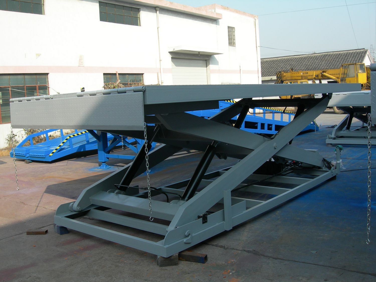 移動式液壓登車橋是叉車對貨車裝卸貨時,叉車從地面直接行駛至車廂的專用設(shè)備,它可以隨時轉(zhuǎn)移裝卸作業(yè)場地,實(shí)現(xiàn)貨物的快速裝卸。利用叉車牽引或推行,可以將移動式液壓登車橋輕松轉(zhuǎn)移到作業(yè)位置就位,叉車可自如地通過登車橋,行駛于貨車與地面之間,實(shí)現(xiàn)快速、安全地裝卸貨。